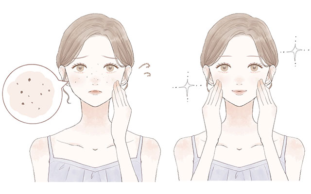 まずは、鈍くなった肌のターンオーバー(肌の生まれ変わり)を正常化するために、古くなった角質をピーリングなどで除去しましょう。