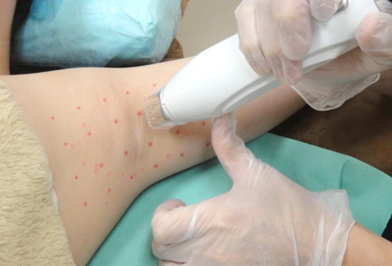 ・脇の広い範囲を5つの層に分けて丁寧に照射(施術時間:1時間ほど)